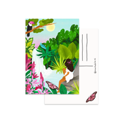 Ansichtkaart - illustratie vrouw bij waterval en jungle