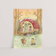 A6 kaart (10,5 x 14,8 cm) gedrukt op 300 grams papier met een gezellige herfstillustratie met bosdieren. Handgemaakt met waterverf en potlood.