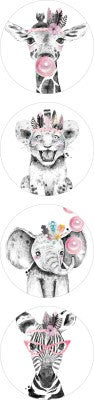 Lieve diertjes roze| Sluitstickers 8st