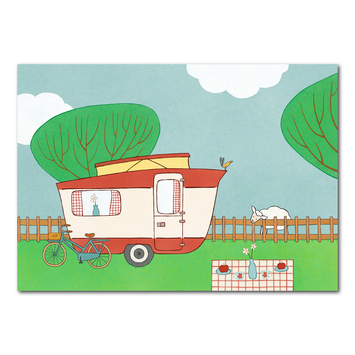 Kamperen bij de boer is een feestje met deze retro caravan. Deze ansichtkaart (10,5 x 14,8 cm) is met de hand getekend door mij en digitaal afgemaakt. De kaart is professioneel gedrukt op 350 grams papier en de achterkant is goed beschrijfbaar. De daadwerkelijke kleuren kunnen afwijken van de kleuren op het scherm.