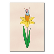 Vrolijk Pasen! Deze narcis heeft wel een heel bijzondere bewoner! Deze ansichtkaart (10 x 15 cm) is met de hand getekend door mij en digitaal afgemaakt. De kaart is professioneel gedrukt op 350 grams papier en de achterkant is goed beschrijfbaar. De daadwerkelijke kleuren kunnen afwijken van de kleuren op het scherm.
